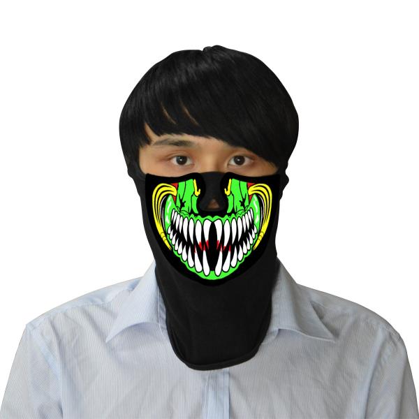EL illuminating mask is composed of soft light surface, comfortable cover fabric and a sound sensor.